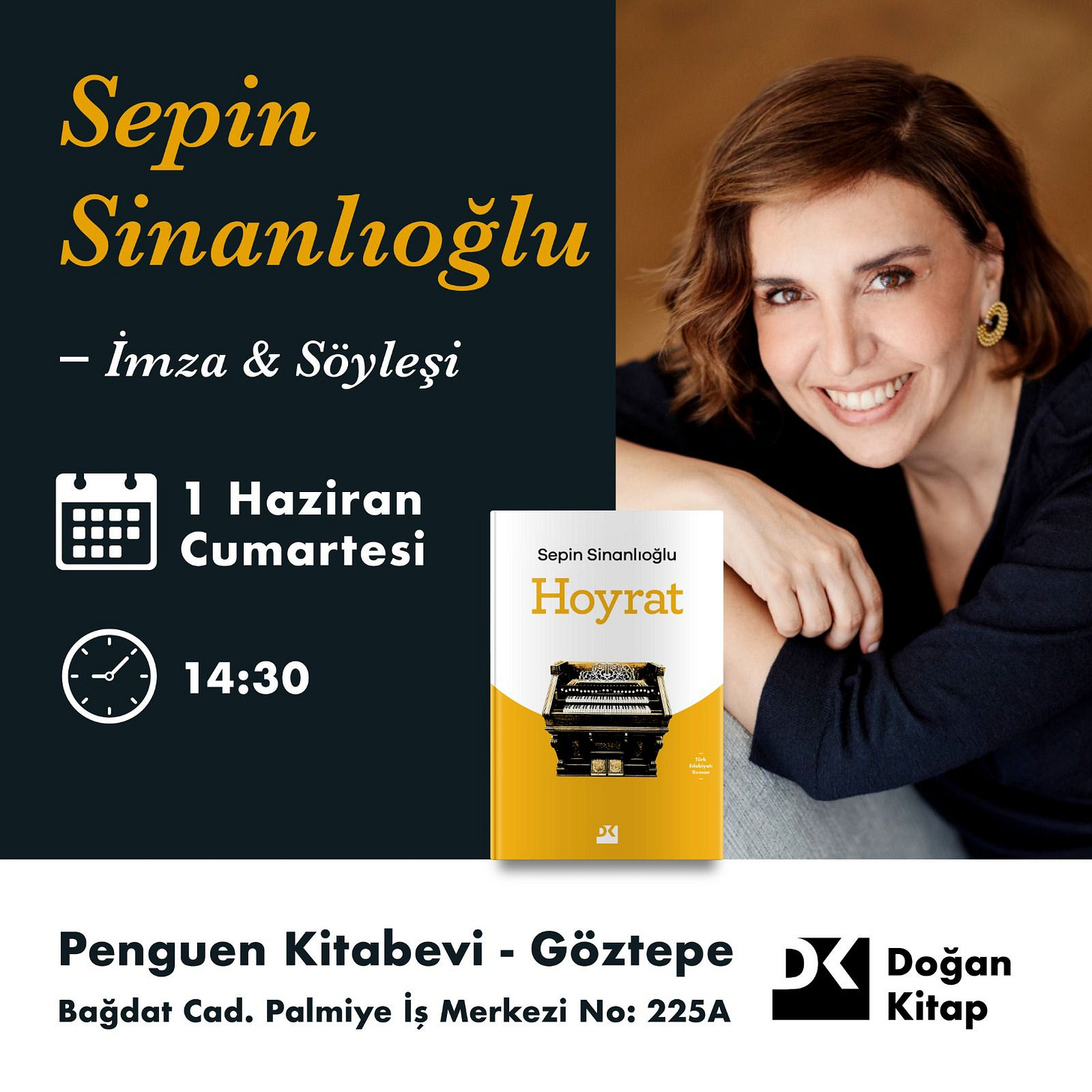 Hoyrat, söyleşi ve imzaSepin Sinanlıoğlu | Hoyrat | Penguen Kitabevi Göztepe - 1 Haziran Sepin SinanlıoğluMay 31, 20242ShareHerkese merhaba,Yarın yani cumartesi günü, yeni açılan Penguen Kitabevi Göztepe şubesinde, sevgili Çağlayan Erendağ moderatörlüğünde, Hoyrat üzerine söyleşi ve imza.Gelirseniz beni mutlu edersiniz.Görüşmek ve sarılmak üzere.Sepin TwitterInstagramThanks for reading Sepin Sinanlioglu! Subscribe for free to receive new posts and support my work.Subscribe